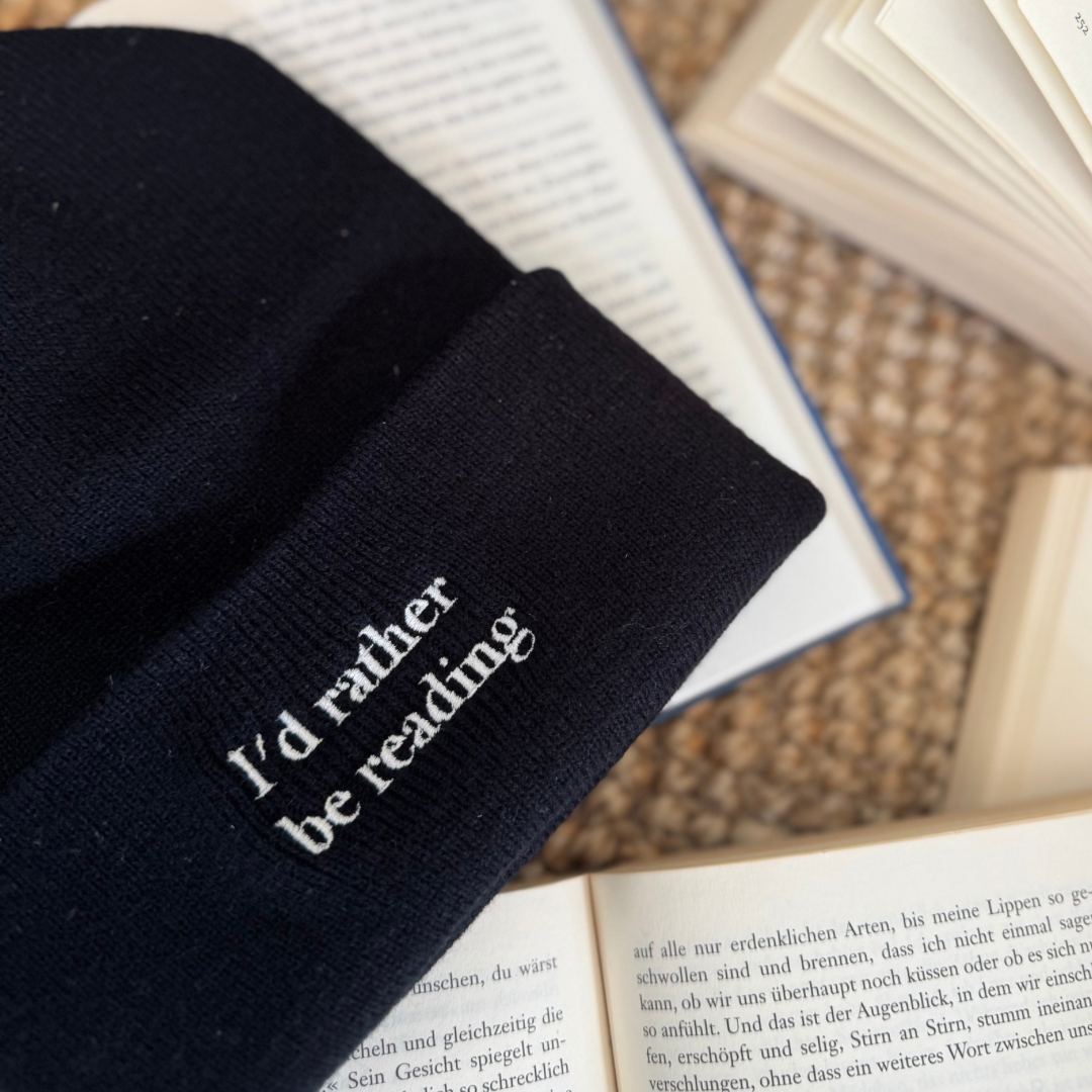 🧢 Beanie „I’d Rather Be Reading“ – Gesticktes Bookish Essential 📚✨