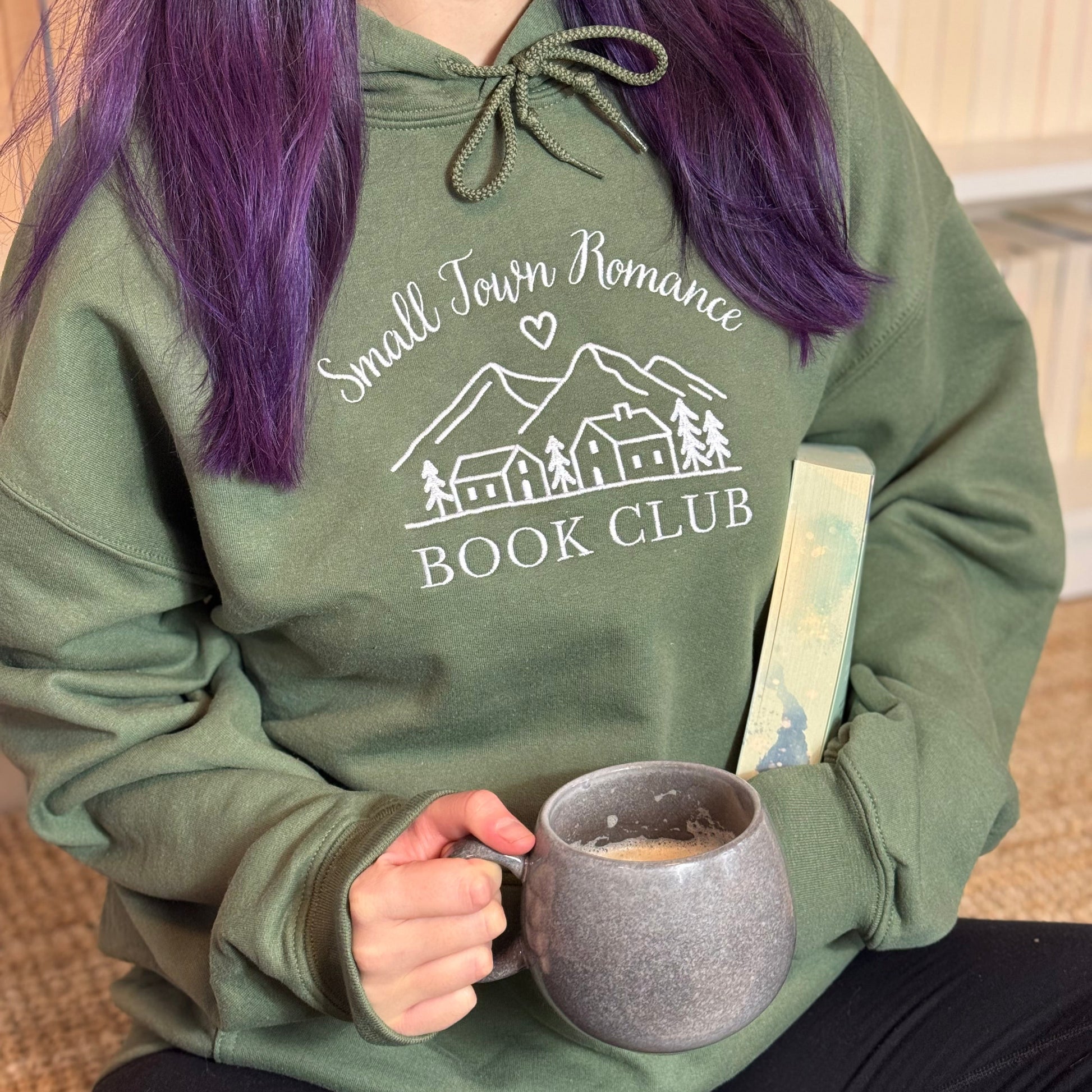 🏡💗 Hoodie „Small Town Romance Book Club“ – Bookish Stickerei für cozy Romance-Lesestunden 📖✨